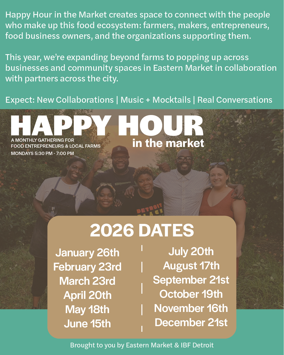 Happy Hour in the Market 5:30-7:00pm Happy Hour in the Market creates space to connect with the people who make up this food ecosystem: farmers, makers, entrepreneurs, food business owners,… Continue reading Happy Hour in the Market (January)