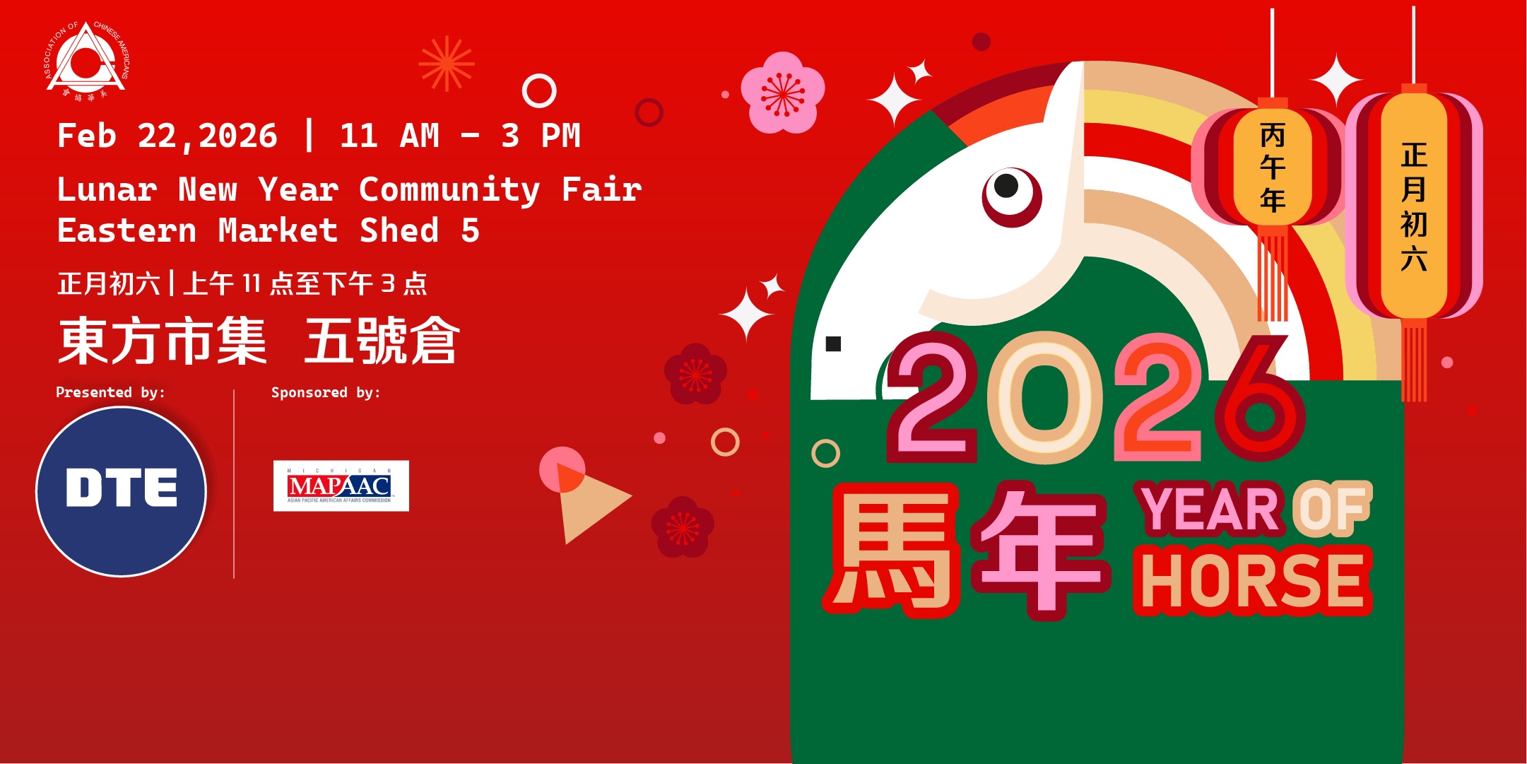 Celebrating the Year of the Horse at Eastern Market Shed 5 on February 22, 2026 Detroit, MI — The Association of Chinese Americans (ACA) is proud to announce that it will… Continue reading 2026 Lunar New Year Community Fair