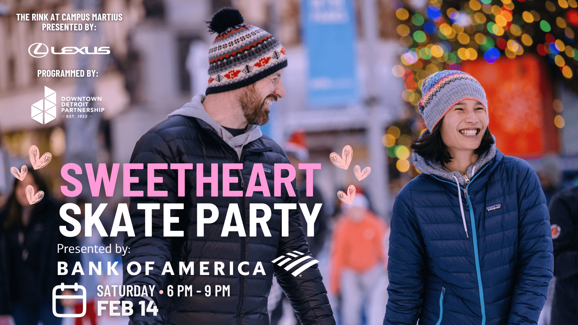 Fall in love with Downtown Detroit this Valentine’s Day during our Sweetheart Skate presented by Bank of America on Feb. 14 from 6 to 9 p.m. at The Rink at… Continue reading Valentine’s Day Sweetheart Skate