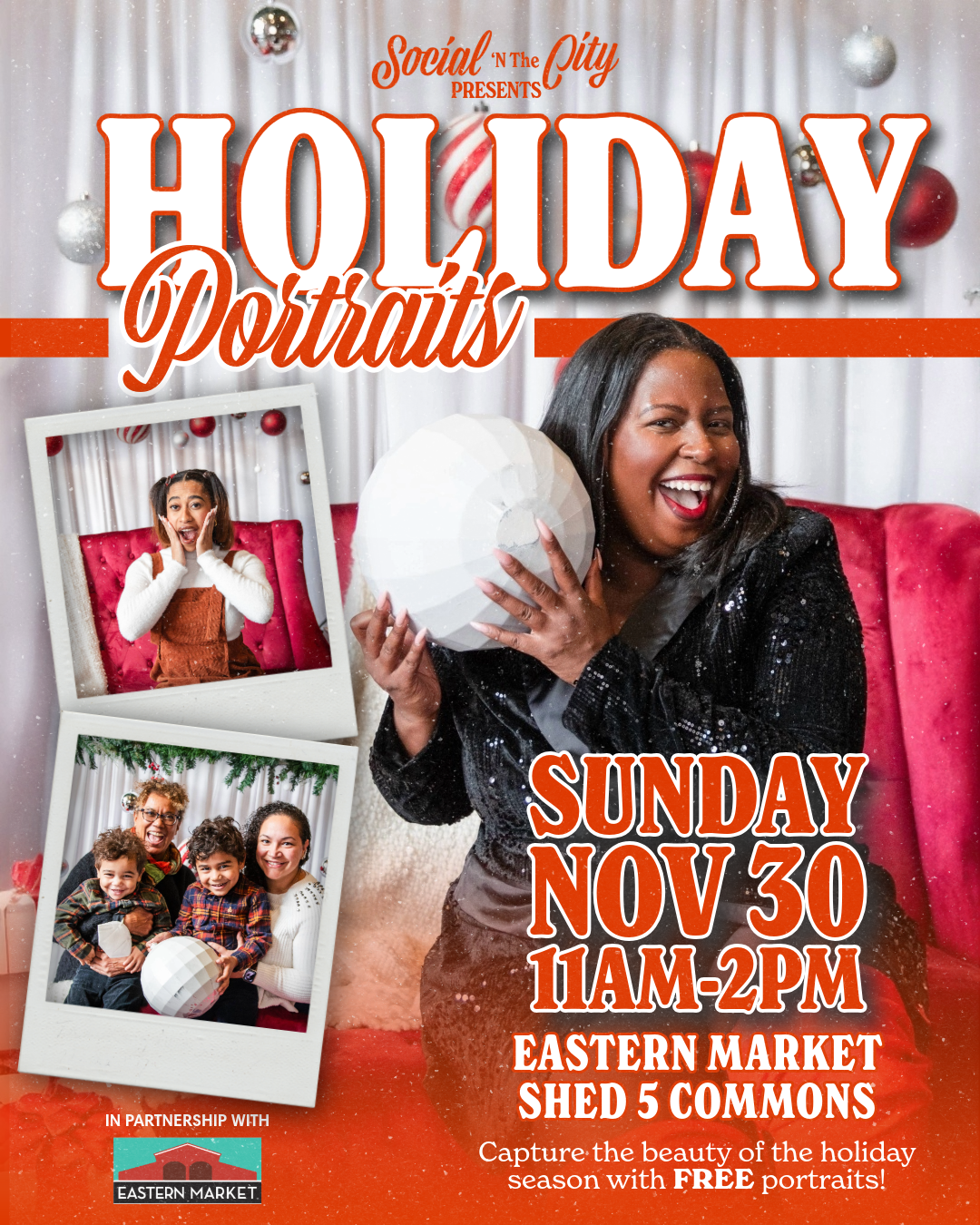 Social N’ the City Events Free Holiday Portrait Sessions, in partnership with Eastern Marker returns November 30th, from 11 am – 2 pm during Holiday Market.