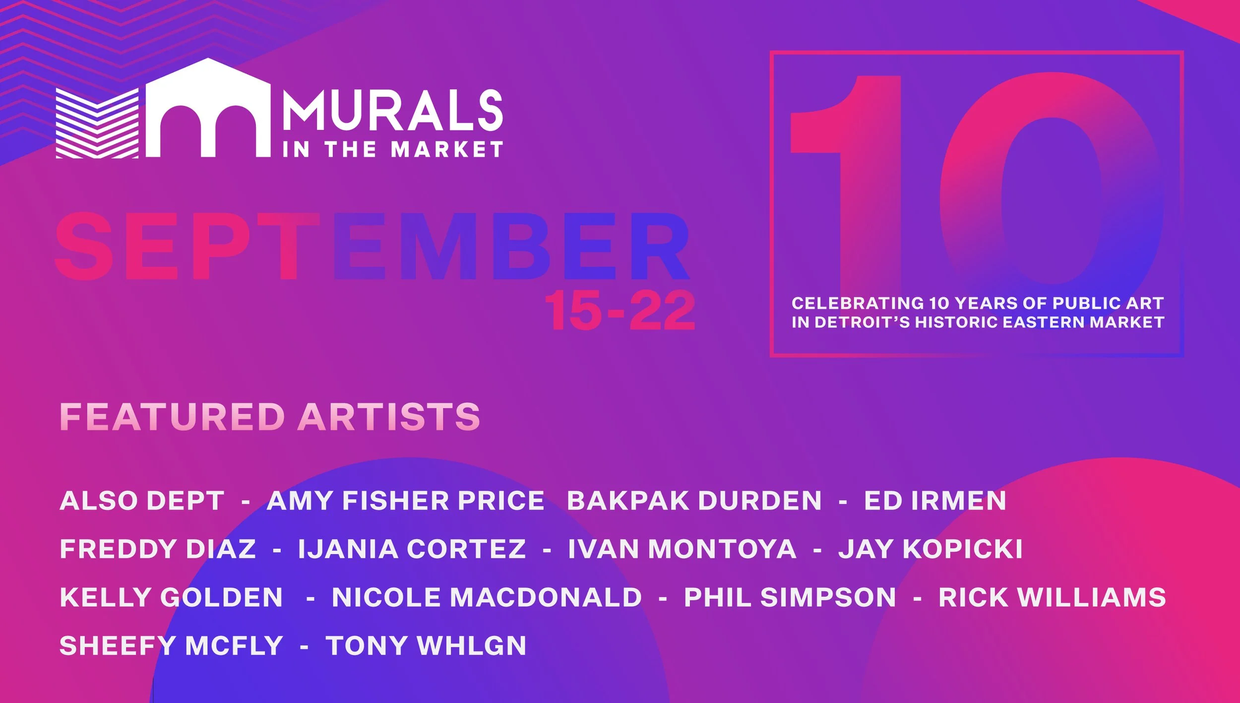 Murals in the Market will take place September 15 – 22. 14 Detroit artists will be painting murals all around Eastern Market all week