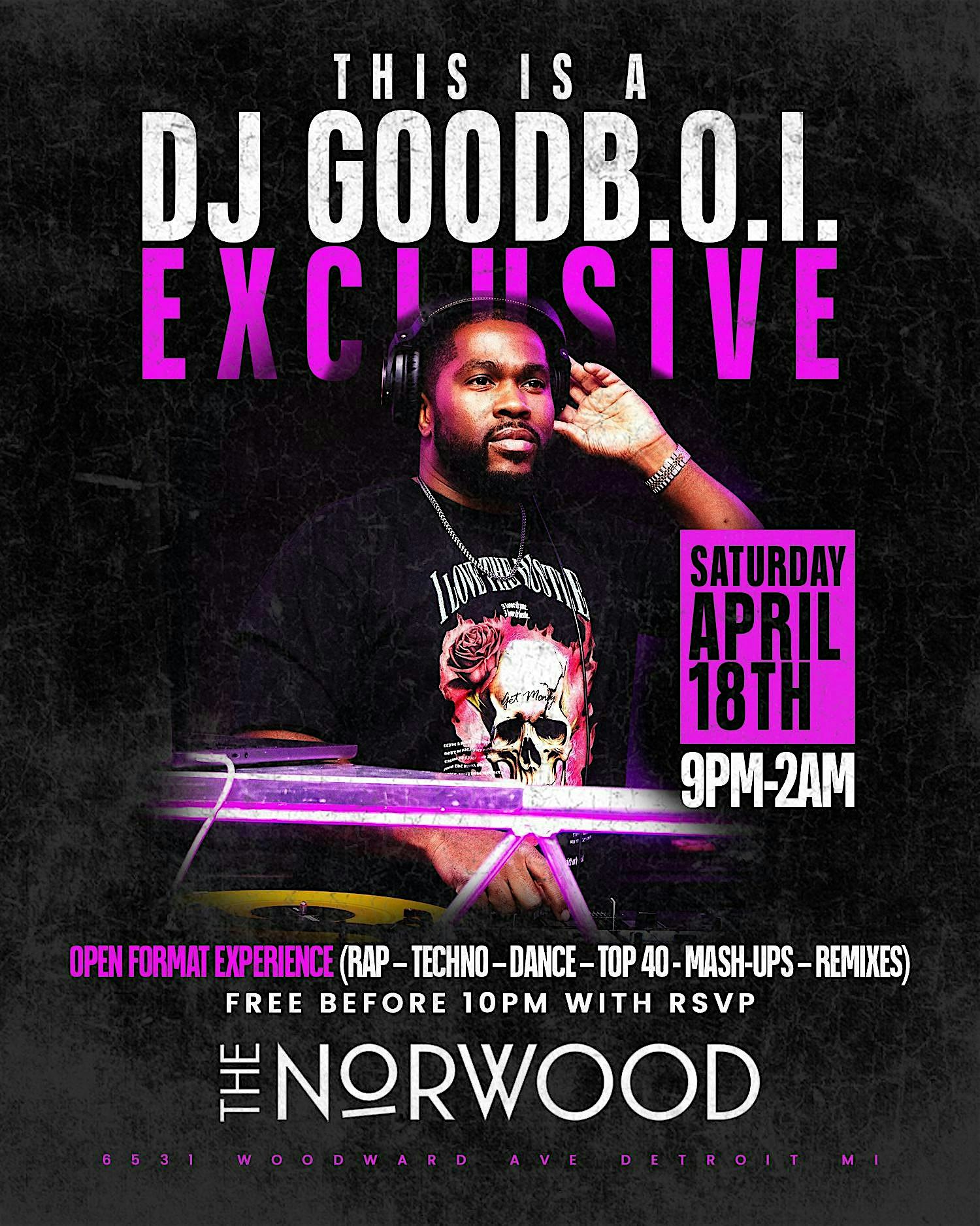 Saturday, April 18th, Dj GoodB.O.I. is bringing The Exclusive vibes to The Norwood!Saturday, April 18th, Dj GoodB.O.I. is bringing The Exclusive vibes to The Norwood!The producer that created “Work”, “Freak… Continue reading A DJ GoodB.O.I. Exclusive